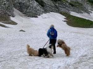 Po dolgih letih smo se odpravili v zatrep doline Vrat, čisto pod Severno Triglavsko steno, kjer izvira Triglavska Bistrica …. večerne in jutranje sprehode pa smo delali v sotesko Martuljških slapov in okrog jezera Jasna …. Res smo preživeli nekaj prekrasnih dni ! Naši Tibetančki so uživali in midva z njimi ! Kampiranje je zakon ! 😉