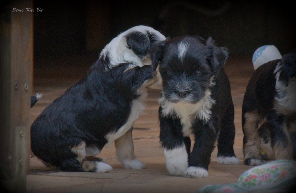 Now they are already 5 weeks old, new families visiting them regulary, only little boy Lhari has no visits and are still waiting for someone, who will love him 🙂