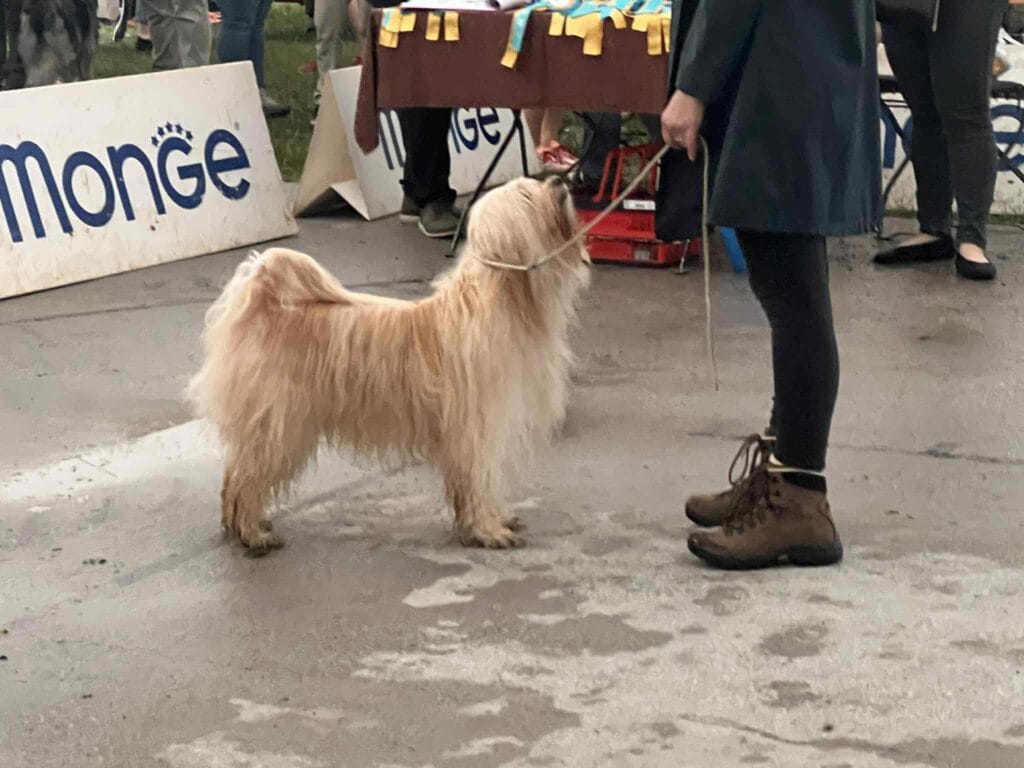 Dež, toča, strele, grmenje, orkanski veter, poplavljeni in podrti šotori in poplavljen razstavni prostor, prekinjena razstava, odlična nasmejana družba, blato, vsi mokri do kože, enako moker do kože Thoombay, (potem, ko sem se preoblekla) razstavljala mokrega psa v gorniških čevljih ….