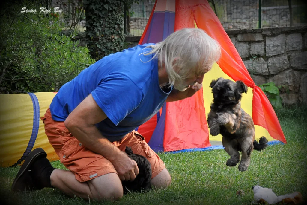 Še naprej se učijo pasjega bontona in dejansko lahko opazimo kako postajajo pravi mali geniji v obvladovanju le tega, predvsem, ko jih opazujemo v interakciji z odraslimi domačimi psi.